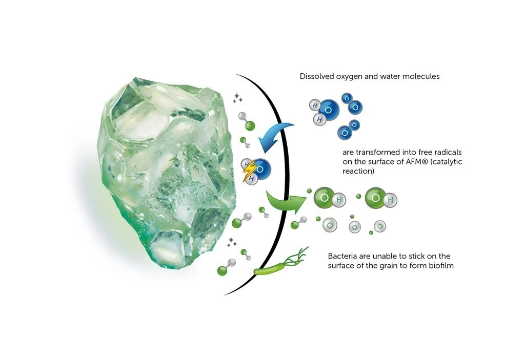 AFM®, vervaardigd van groen en bruin glas, wordt blootgesteld aan een uniek activeringsproces om zelfsteriliserend te worden en superieure mechanische en elektrostatische filtratieprestaties te verkrijgen.