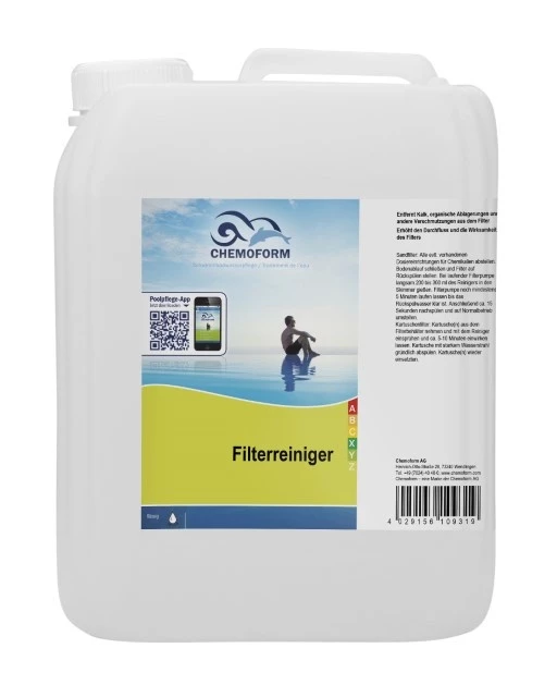 De zandfilter reiniger heeft een unieke samenstelling van gestabiliseerde reinigingsmiddelen, die ontvetten en geaccumuleerde kalkafzettingen verwijderen.